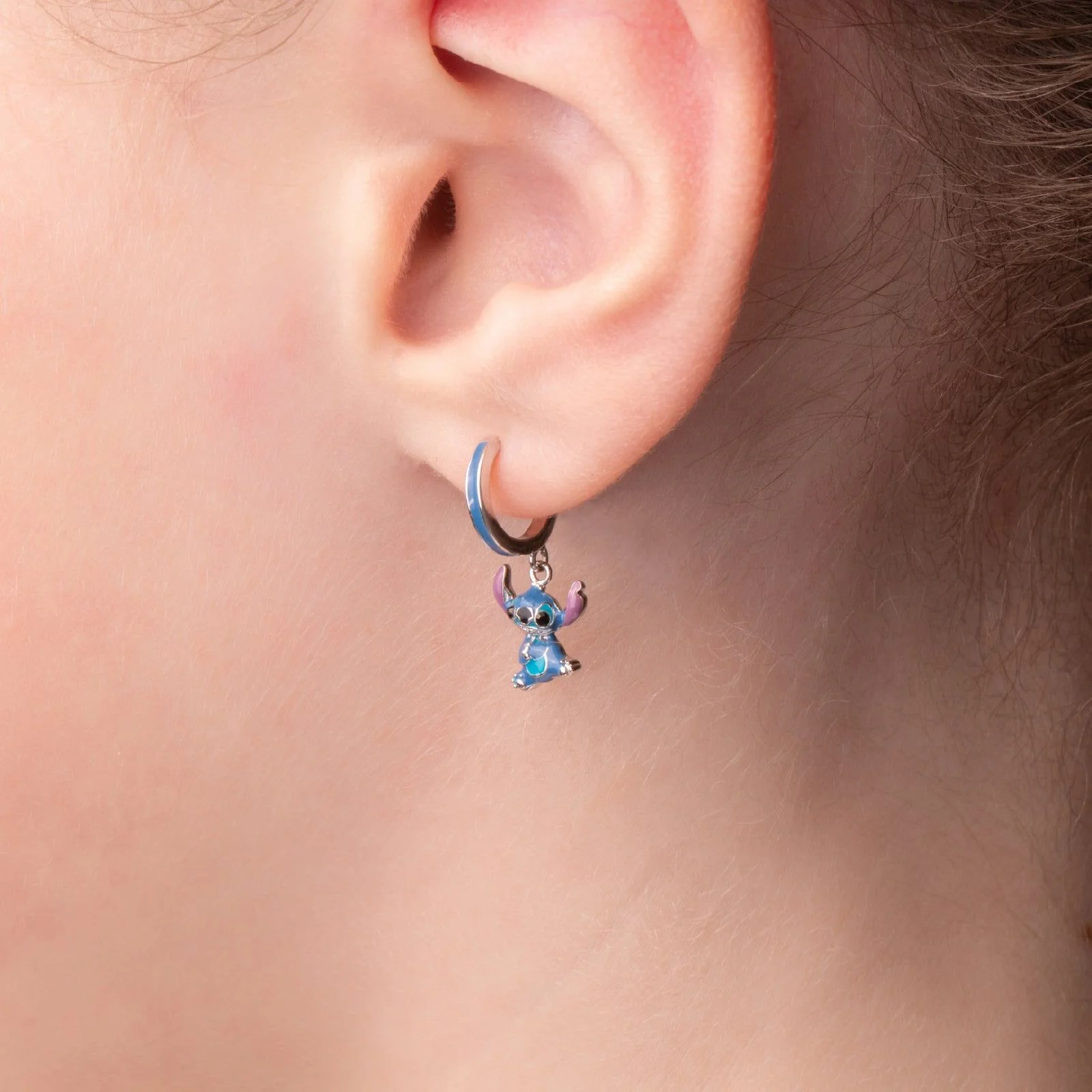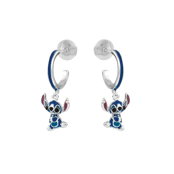 Orecchini a cerchietto della collezione Disney Stitch da bambina. Colore: argento e blu. Gli orecchini sono in argento 925‰ a forma di Stitch smaltato. Chiusura a perno.
