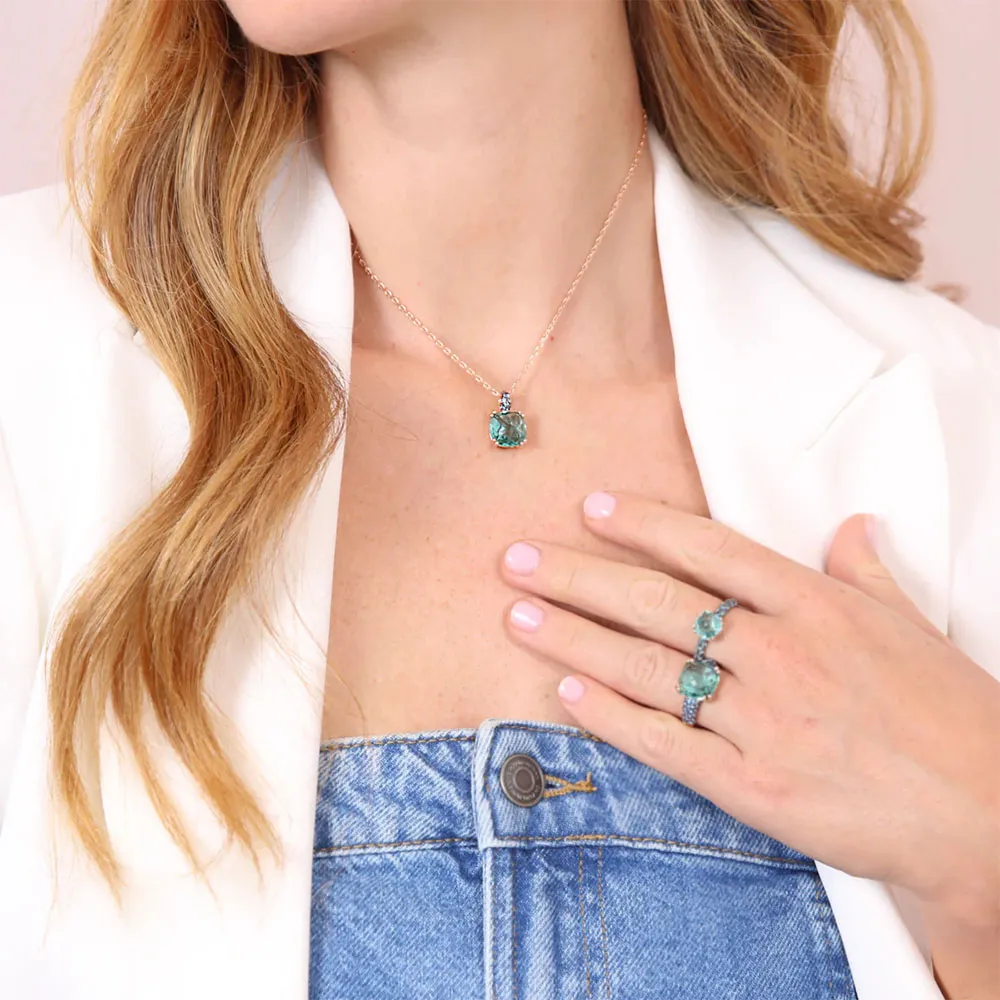 - GEMME: Zirconi e cristallo verde Paraiba taglio quadrato
