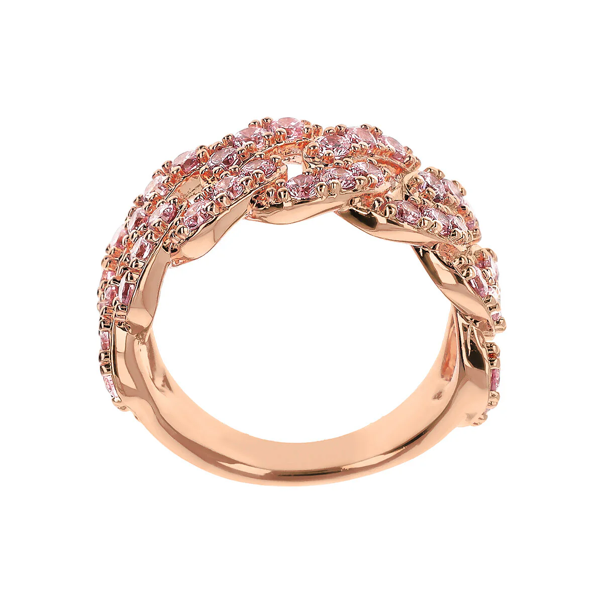 Anello a fascia Bronzallure realizzato in lega Golden Rosé, placcata Oro rosa 18kt, con catena grumetta squadrata in pavé di cubic zirconia, qualità luminosa.