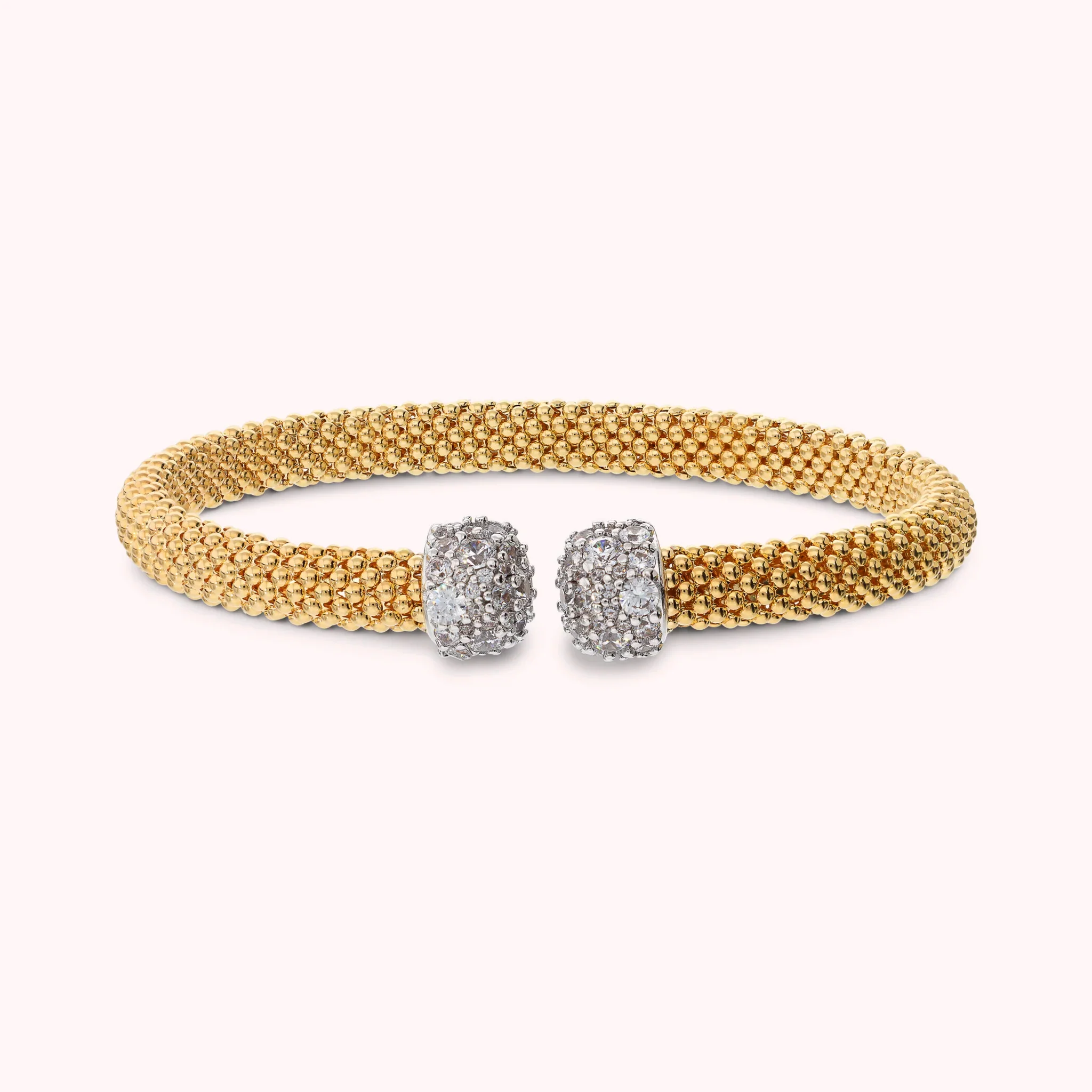 BRONZALLURE Bracciale Rigido Golden Maglia Popcorn con Pavé di Cubic Zirconia