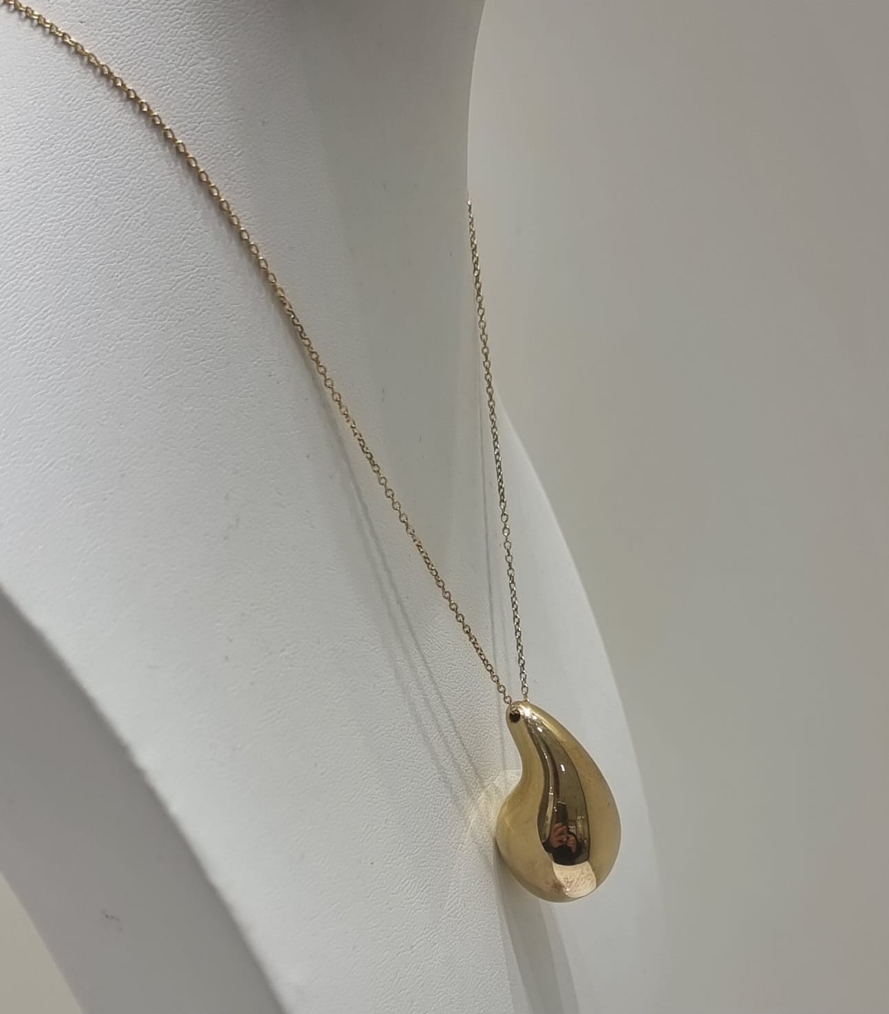 Girocollo maglia rollé lunghezza cm. 40 in argento 925 con placcatura oro giallo, con pendente forma a goccia misura lunghezza cm. 3,20 e larghezza cm. 1,8