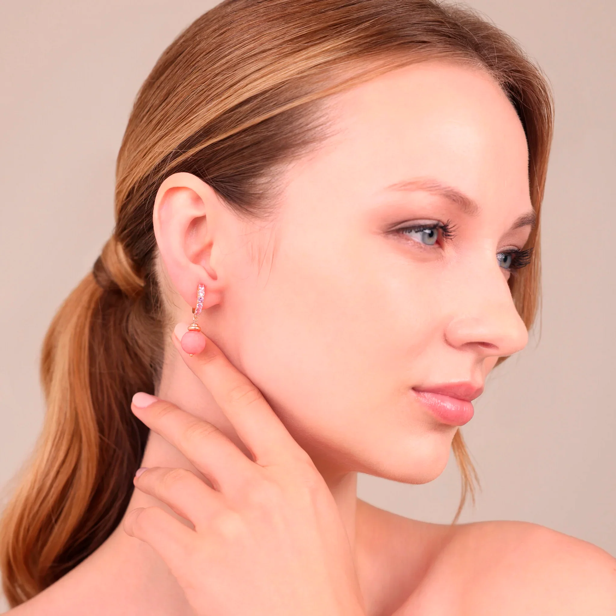 Orecchini pendenti Bronzallure in Golden Rosé, con un cerchio scintillante e un delicato ciondolo sferico in pietra naturale. Un tocco di luce raffinata che accompagna con grazia ogni gesto.