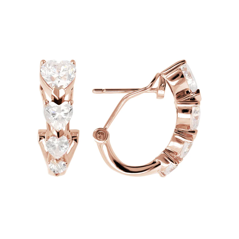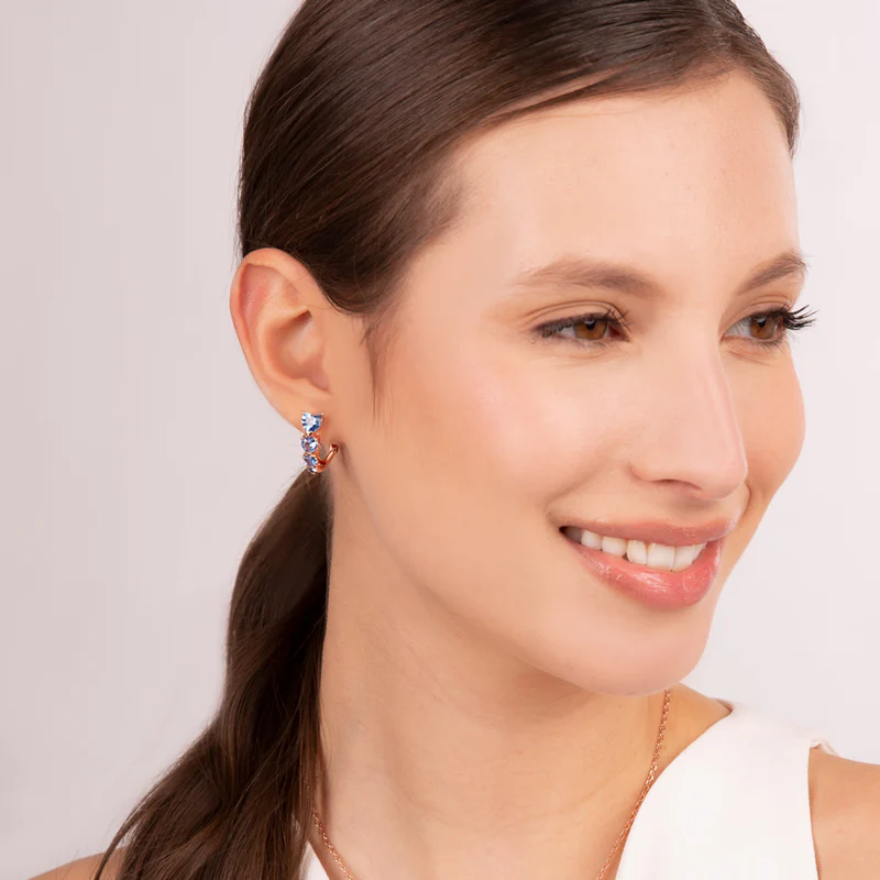 Orecchini a cerchio Bronzallure realizzati in lega Golden Rosé, placcati oro rosa 18kt con quattro cuori in cubic zirconia disposti in grandezza decrescente; chiusura a perno e clip. Creazione elegante, dal design perfetto per dare luminosità al viso.