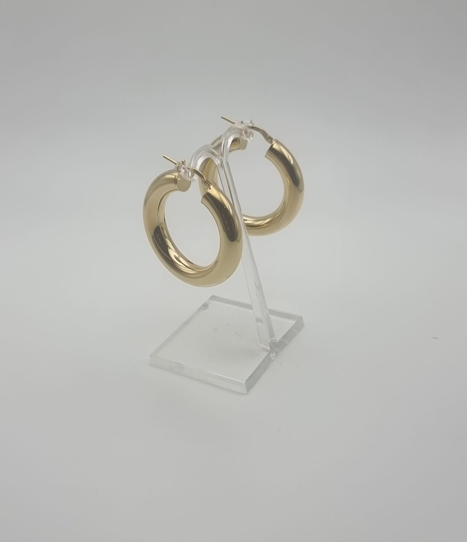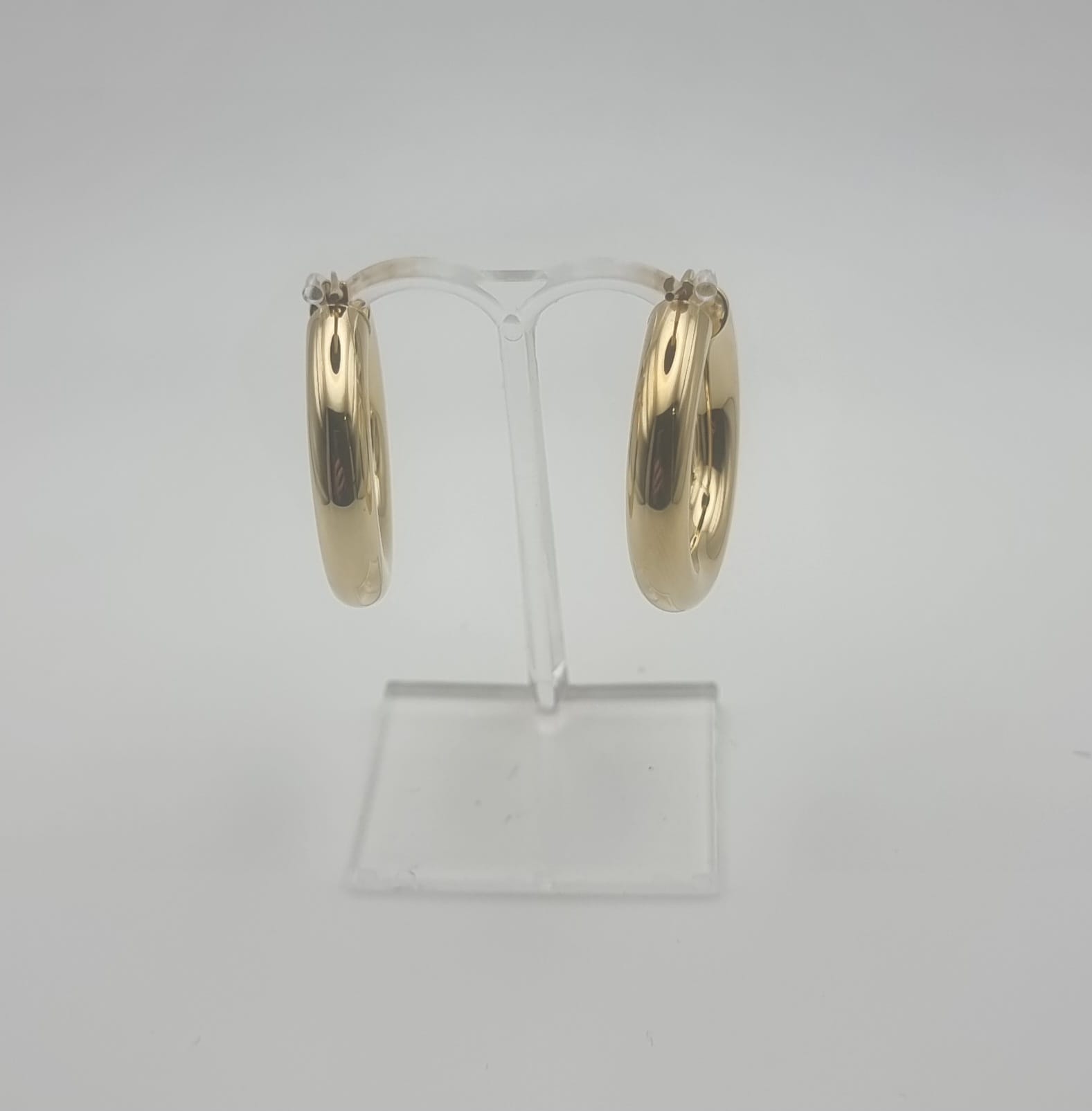 Orecchini a cerchio forma tonda da Donna in argento 925 placcatura oro giallo a lavorazione lucida con chiusura a scatto misura diametro cm. 3,00