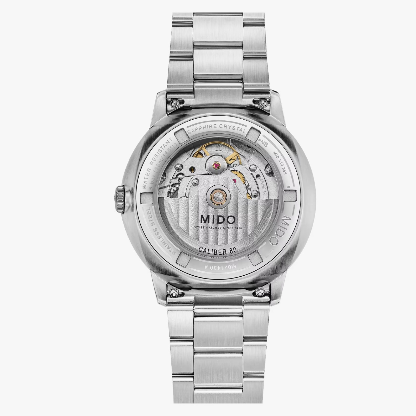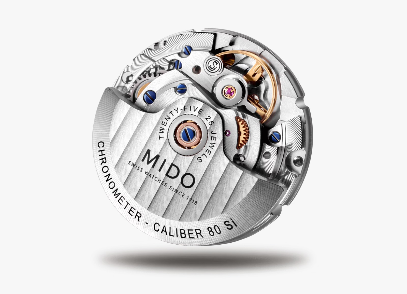 Il Calibro 80 MIDO rappresenta un importante progresso nei movimenti a carica automatica. Grazie alla tecnologia di nuova generazione, offre fino a 80 ore di riserva di carica, il doppio rispetto a un movimento convenzionale.