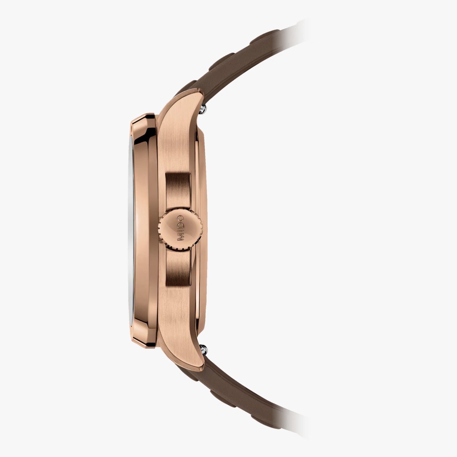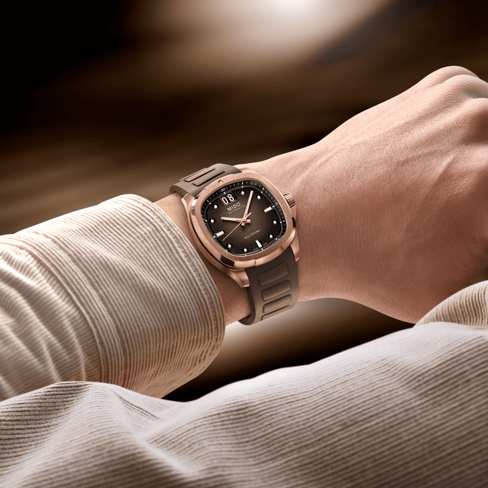 Un brillante ritorno di fiamma! Nata dallo straordinario patrimonio di MIDO, la cassa a forma di TV torna al centro della scena per il Multifort TV Big Date, tanto intenso quanto preciso, grazie al suo formidabile movimento meccanico. Il design moderno e dinamico di questo orologio svizzero è sottolineato da un quadrante spazzolato orizzontale di grande impatto e dalla sua funzione distintiva: la scritta BIG DATE a ore 12. Il suo formidabile movimento automatico di ultima generazione, il Calibro 80, è dotato di una spirale high-tech in Nivachron™ che offre un’eccezionale resistenza agli urti e ai campi magnetici.