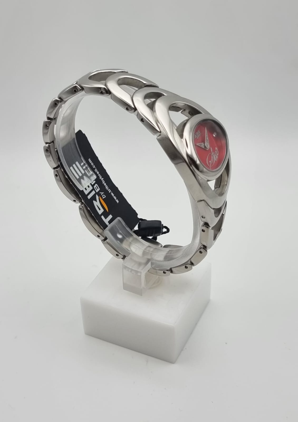 Orologio Tribe di Breil donna in acciaio con quadrante color ROSSO, cassa forma ovale e bracciale in acciaio, orologio anni 90 nuovo venduto ancora con la sua garanzia originale di quel periodo
